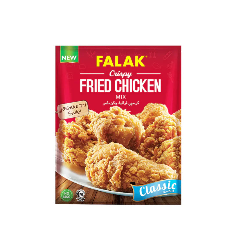 Enjoy restaurant-style fried chicken at home with Falak Crispy Fried Chicken Mix. Specially blended with flavorful spices and seasonings, it gives your chicken a golden, crunchy coating with a juicy inside. Quick, easy, and delicious – perfect for family meals and snack times.