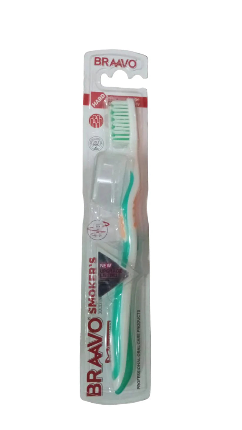 Keep your smile bright and clean with the Imported Braavo A-792 Smoker Toothbrush. Specially designed with hard bristles, it helps remove stubborn stains caused by smoking, tea, and coffee while keeping your teeth fresh and healthy. The protective cap ensures hygiene, making it ideal for both home and travel.