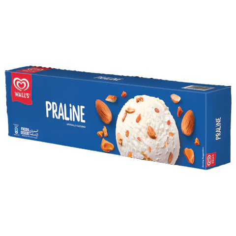 Indulge in the creamy goodness of Wall’s Praline Ice Cream. A perfect blend of smooth, velvety ice cream swirled with rich caramel and crunchy praline pieces for a delightful treat in every spoonful.